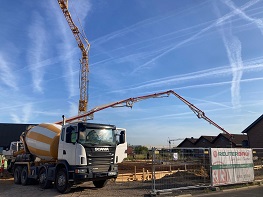 In Hürth läuft der erste Beton…Auf unserer Baustelle in Hürth (Haus Kendenich) wurde heute die Bodenplatte betoniert.
