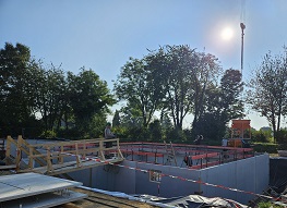 Freitags wird betoniert…Bei strahlendem Sonnenschein und bester Laune wurden heute die Kelleraußenwände betoniert…